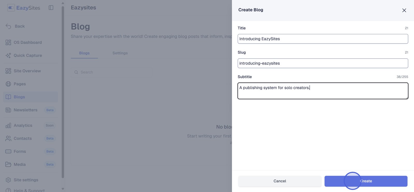 The EasySites Blog Post Editor provides a central workspace for creating and refining content, helping posts stay organized and easily accessible within the platform. It is designed to support an efficient writing and editing experience, keeping all elements of a post integrated in one place.