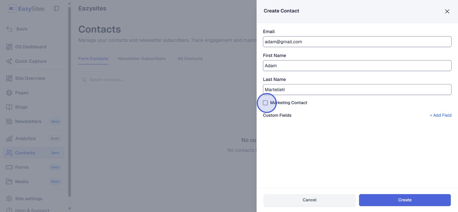 • Enable Marketing Consent if the contact agrees to receive promotional emails.