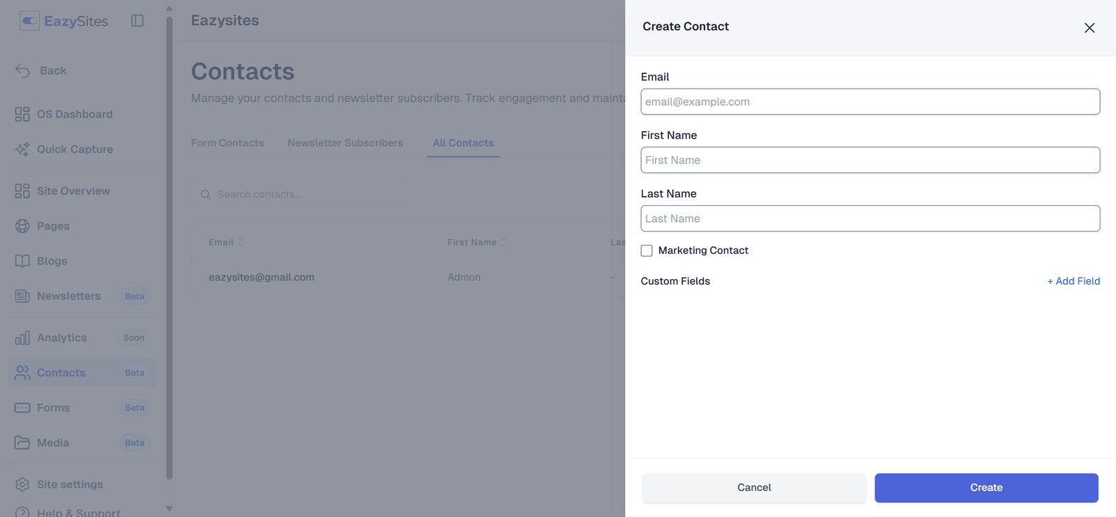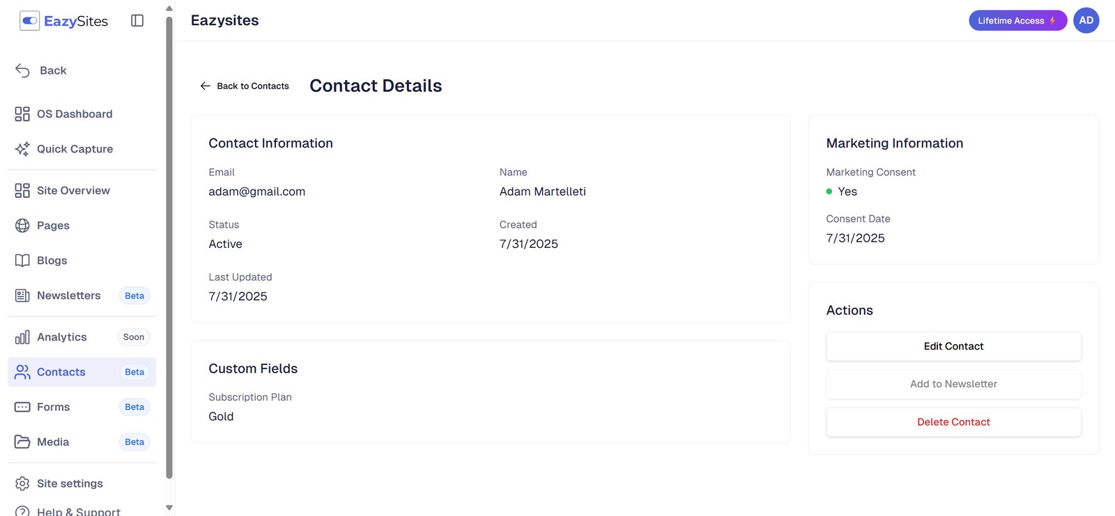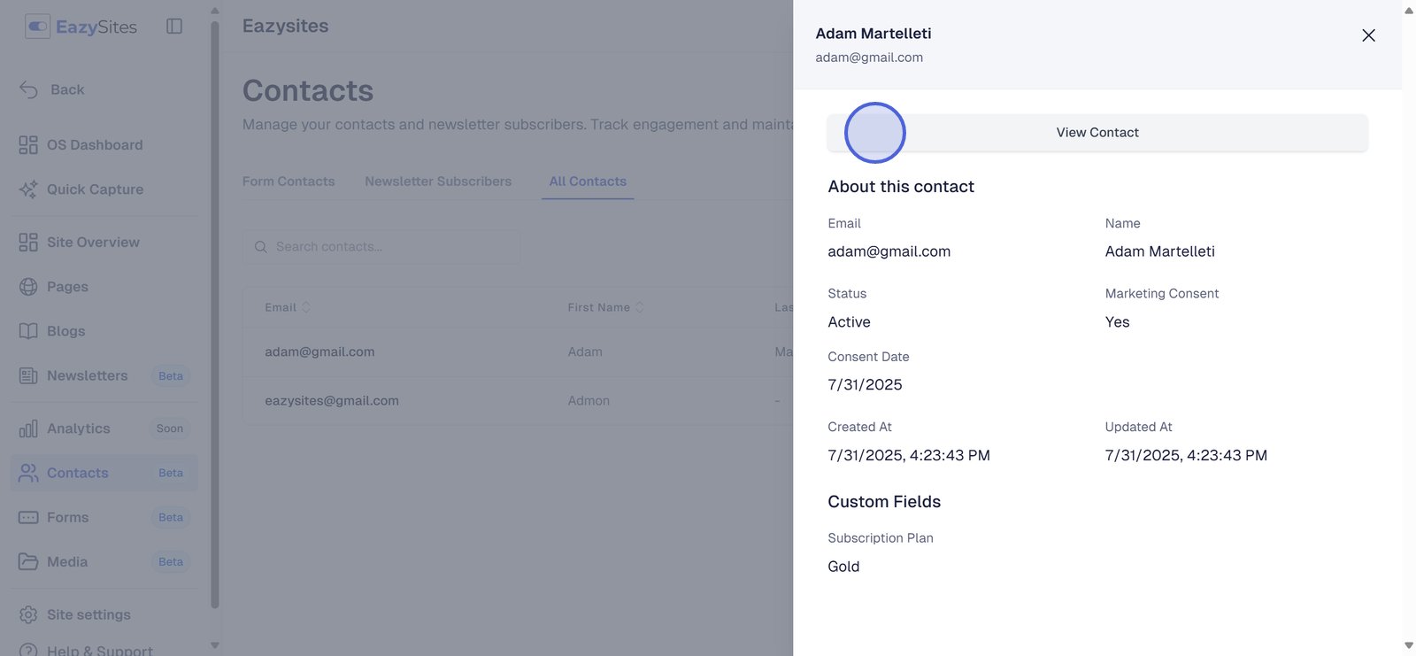 EazySites offers a database that stores contact information from form entries and newsletter sign-ups in one place. Enter contact details, include extra fields optionally, and preview entries to ensure all information is complete. This helps deliver offers to the right audience and keeps communications relevant.